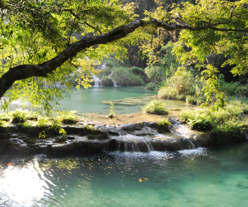 Le fleuve Cahabón s’engouffre sous un pont calcaire, formant en superficie une série de bassins à l’eau turquoise. Étonnant et superbe !