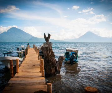 Puis descente vers le Lac Atitlan, lieu hautement emblématique du Guatemala. Celui-ci est niché entre 3 volcans à 1600 mètres d’altitude et offre de magnifiques panoramas. Les petits villages qui bordent le lac – souvent uniquement accessibles en bateau – perpétuent fêtes et marchés ancrés dans les traditions locales. Arrivée à Panajachel.