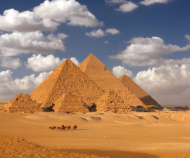 La deuxième journée au Caire sera consacrée à la visite des sites du plateau de Gizeh, soit les trois pyramides de Khéops, Khephren et Mykérinos, dont la construction reste toujours un mystère.